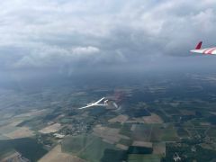 La patience récompensée. Malgré l’annulation de l’épreuve pour les planeurs de la classe Club et après un départ plusieurs fois repoussé, la classe Standard est en vol ! Profitant du soleil qui vient de percer, les concurrents ont franchi la ligne de départ à 17h06. Le lien vers la course en direct.
