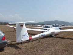 15 pm. Today's tail wind, 6 to 9 knots, forced us to grid the glider's real, real tight so as to maximize the TORA (Take Off Run Avaiable) 12 am. Today we have wind from South/West. Only in South East of the task’s area there will be good thermal activity with cumulus above 4.000 m. Good SW winds North of the task’s area; weak winds from SW with Adriatic sea breezes in the SE area. Probably wave of SW wind. Thermal activity will probabily decrease at 5 pm LT in the center area, at 6 pm LT over t...